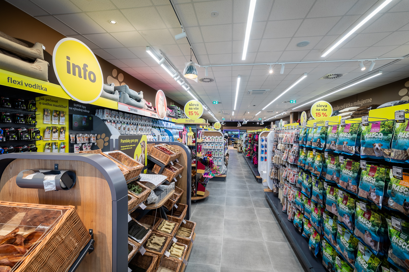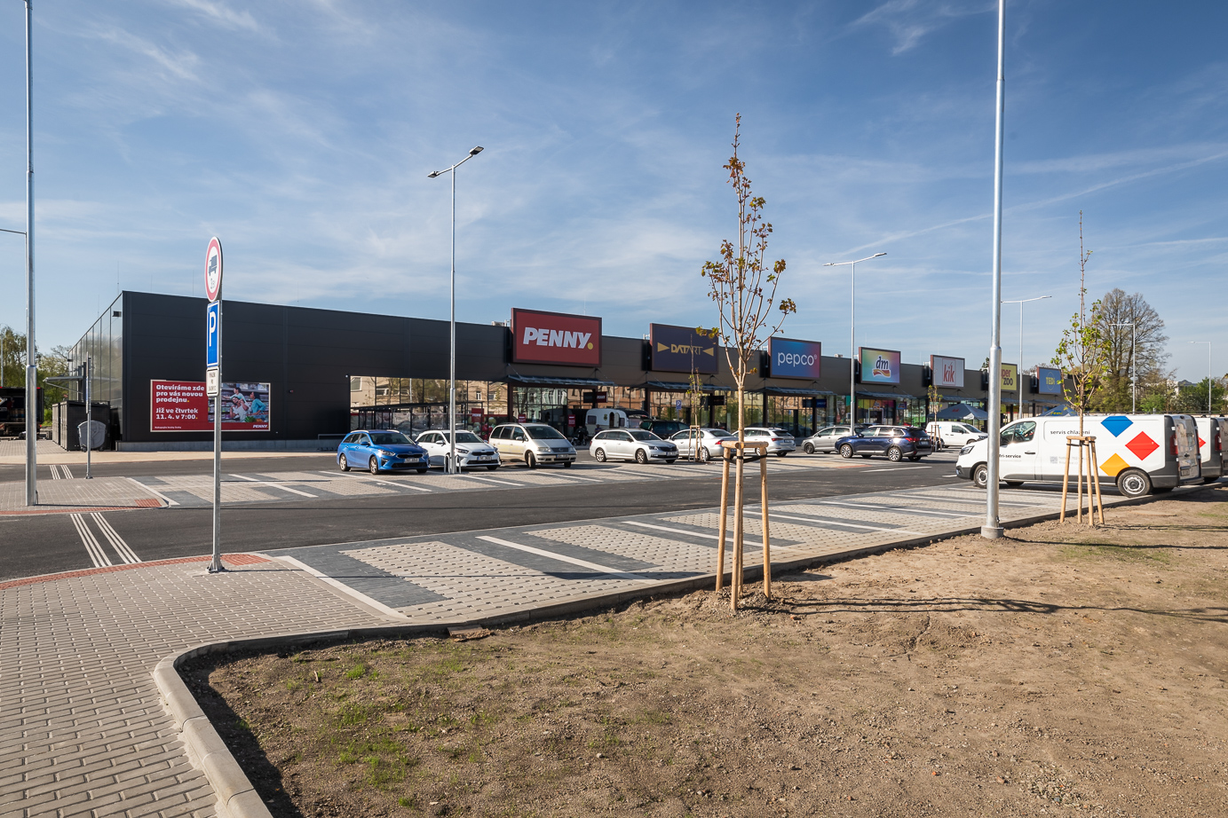 Obchodní zónu tvoří supermarket Penny, prodejny Datart, Pepco, DM drogerie, KIK, Super Zoo a Tedi, dále pak parkoviště pro osobní vozidla, nákladová rampa, zadní obslužná komunikace pro zásobování a samostatný objekt trafostanice. Celý objekt je nadstandardně zateplen a vytápění/chlazení je řešeno kombinací rekuperační jednotky s tepelnými čerpadly.